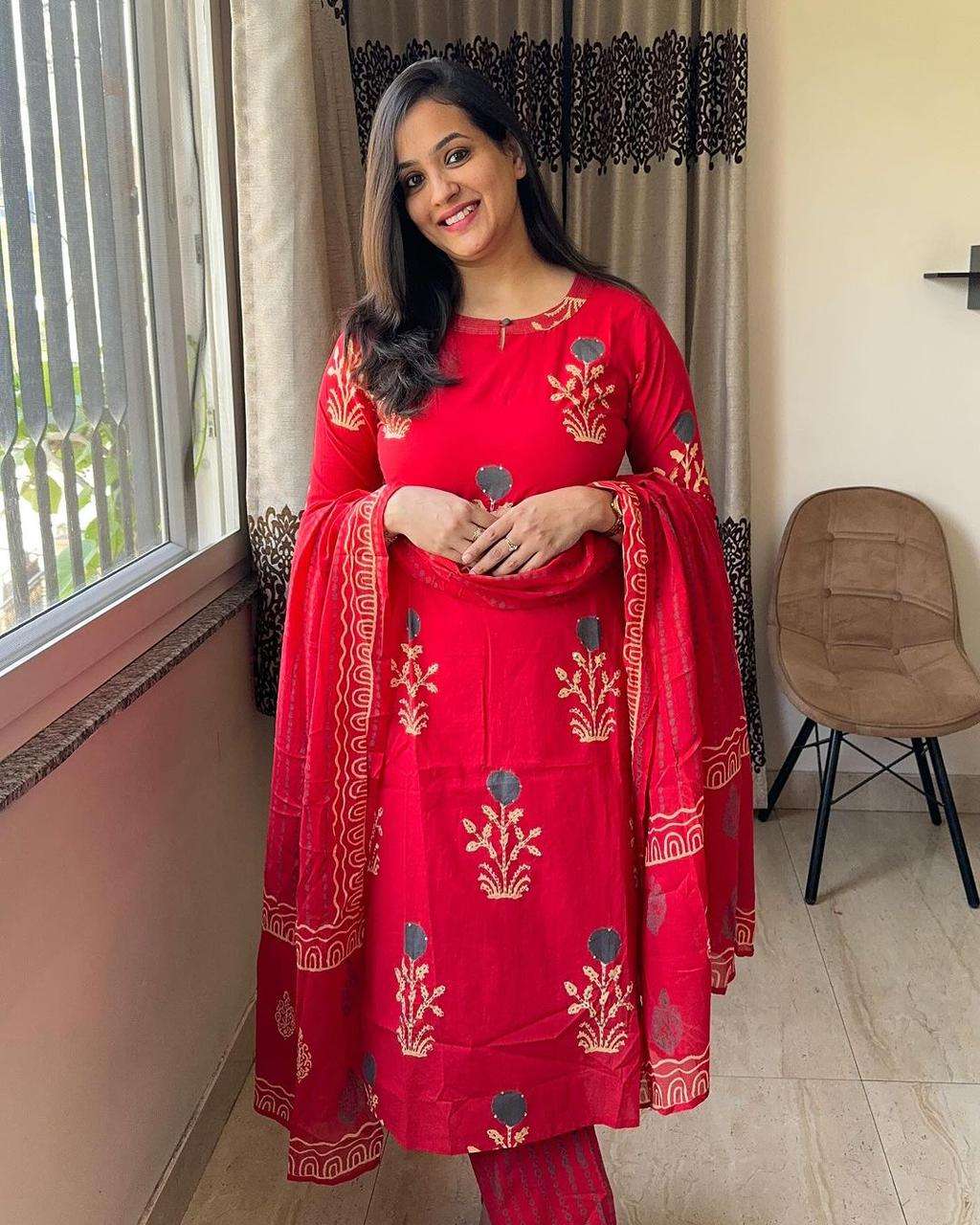 Pure Fine Cotton Fabric Kurti With Pant And Dupatta